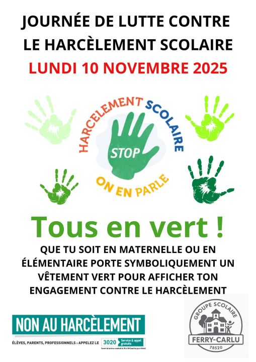 Lundi 10 Novembre 2025 💚 Journée de lutte contre le harcèlement scolaire 💚