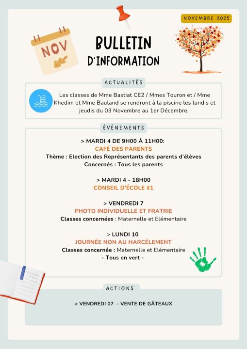 VIE DE L'ECOLE - Bulletin d'information NOV 2025