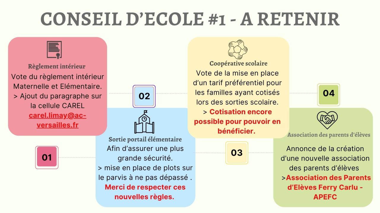 Voici les principales décisions et informations issues du 1er conseil d’école :